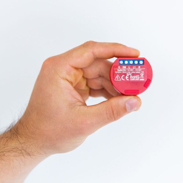 Controle una amplia gama de electrodomésticos y equipos de oficina (luces, líneas eléctricas, sistemas de seguridad, radiadores de calefacción, sistemas HVAC, etc.) desde cualquier lugar con el interruptor de relé operado por WiFi más pequeño: Shelly 1PM.